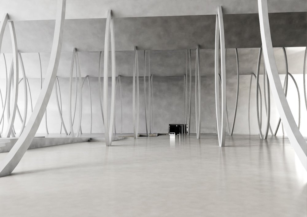 With reference to the artificial and artistically designed park and taking the element of water into consideration, the waves shape the landscape and the building.